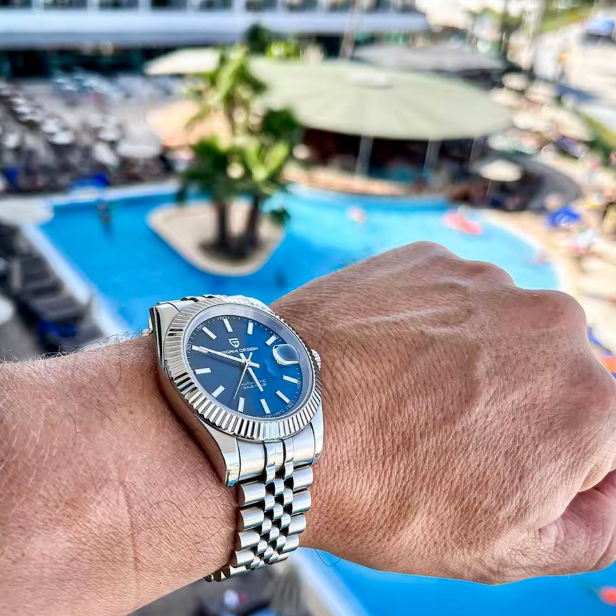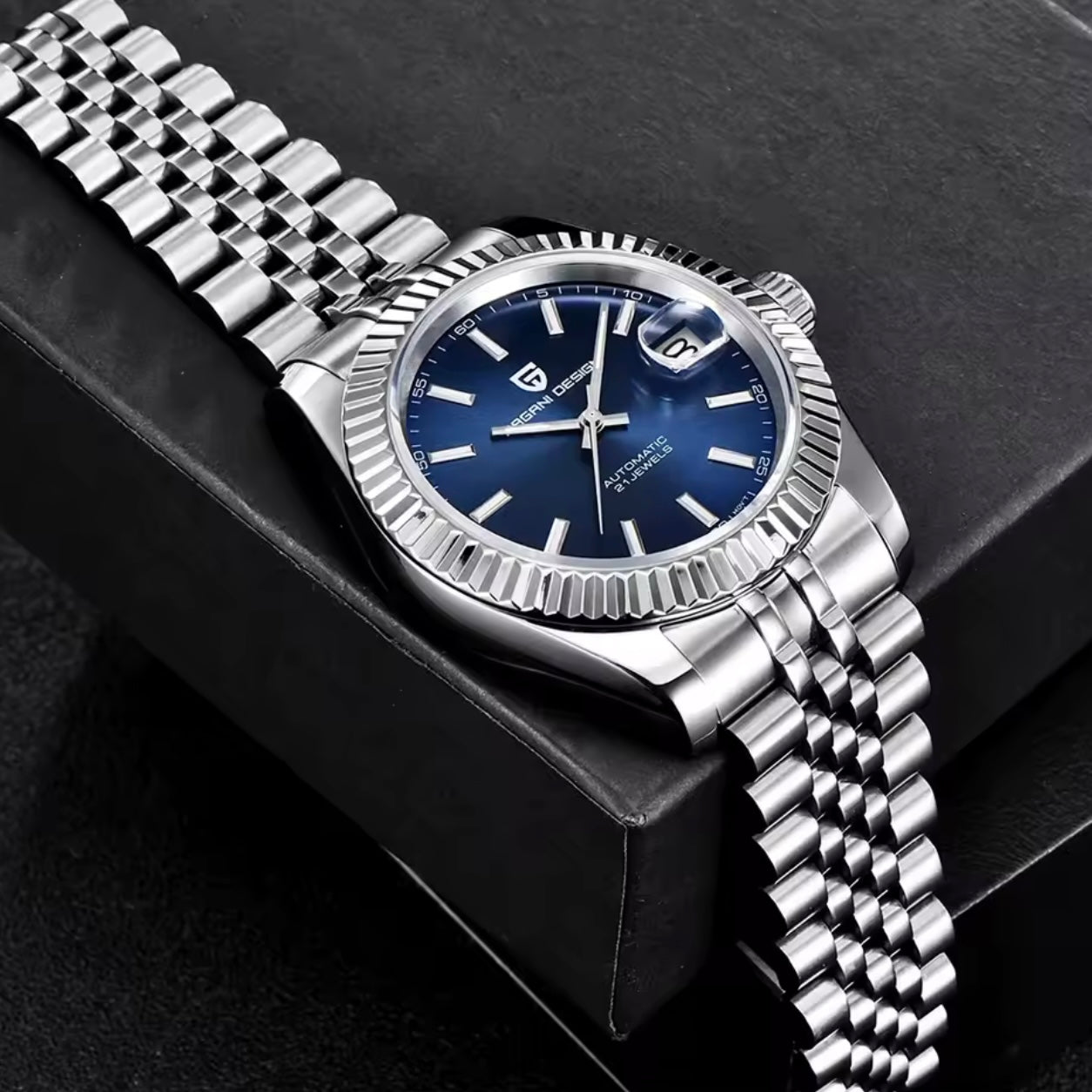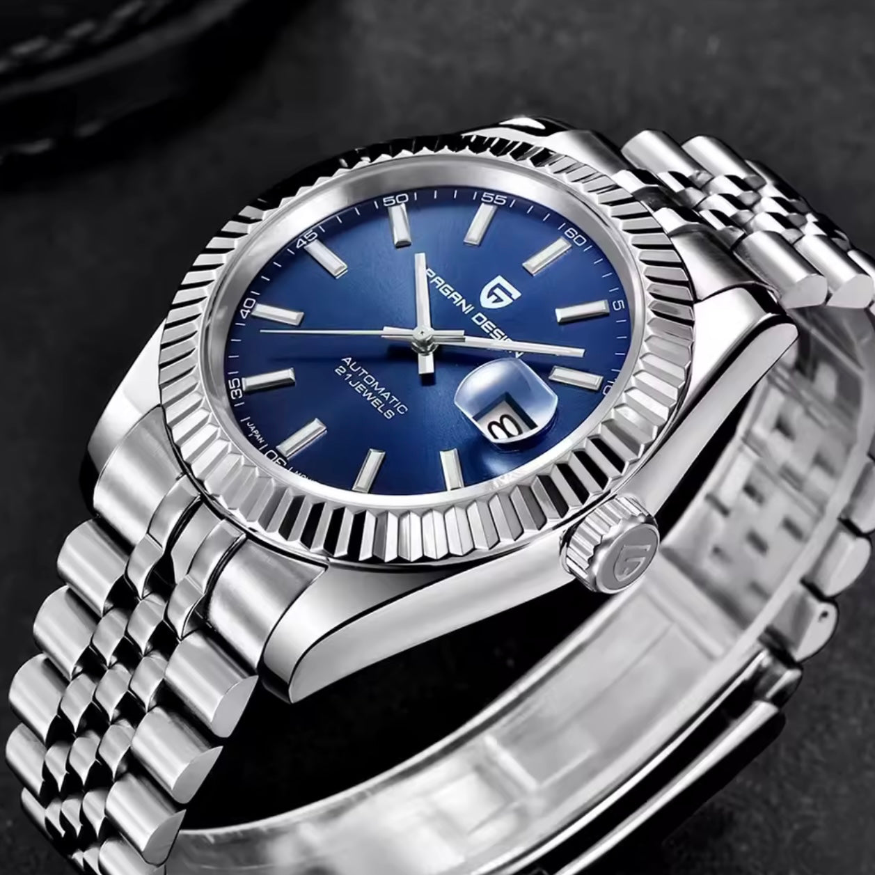 Nuestro Pagani Design PD-1645 Automático es un reloj de alta gama que une elegancia, precisión y resistencia. Diseñado para quienes valoran el estilo y la funcionalidad, este reloj ofrece una presencia imponente gracias a su caja de acero inoxidable 316L, su cristal de zafiro y su movimiento japonés automático Miyota 8215. Ideal para uso diario o eventos formales, aporta un toque de distinción en cada ocasión.